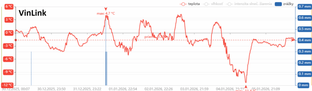 Už dlhšiu dobu u nás prevláda chladné počasie, s teplotami približne od –6 °C do +3 °C. To sa, prirodzene, prejavilo aj na teplote v pivniciach. Ja mám povrchovú pivnicu, kde je momentálne okolo 3 °C a teplota vína sa pohybuje približne na úrovni 5 °C.